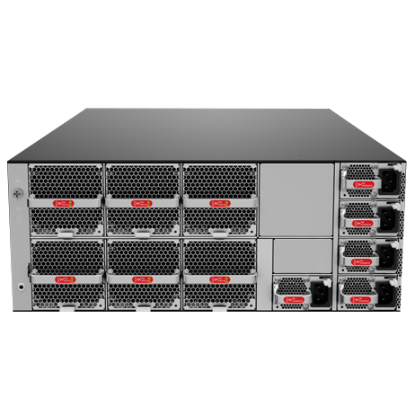 ● 最大支持 128 个 400GE 高性能 QSFP-112 接口,400GE QSFP-112 接口支持向下兼容 200GE,支持一分四拆分(4*100G),支持一分二拆分(2*200G); 100GE/200GE/400GE 上行与 CloudEngine 16800 系列共同构建无阻塞的网络平台。